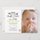 This cute "little honey bee" hand-drawn/doodle style 1st birthday photo invitation features a white background with a honey jar and dipper, bees, and flowers. Personalize it for your needs. You can find matching products at my store.