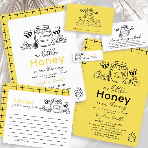 Little Honey Hand-drawn Bee Baby Shower Invitation