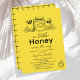 This cute "little honey" hand-drawn/doodle style baby shower invitation features a mustard yellow background with a honey jar and dipper, bees, and flowers. Personalize it for your needs. You can find matching products at my store.