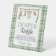This charming hunting-themed diaper raffle sign is a fun and helpful addition to a rustic or woodland baby shower. Designed with soft watercolor illustrations, neutral green tones, and a classic gingham border, it clearly explains the diaper raffle activity while blending seamlessly with your party decor.