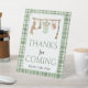 This charming hunting-themed “Thanks for Coming” sign is a thoughtful finishing touch for a rustic or woodland baby shower. Featuring soft watercolor illustrations, neutral green tones, and a classic gingham border, it blends beautifully with hunting and outdoor-inspired decor.