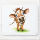 Little jersey cow with a cocked head and blue eyes