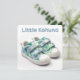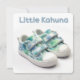 This playful greeting card features the words "Little Kahuna" in a fun, bold blue font, paired with a cute illustration of boys' sneakers adorned with a Hawaiian floral pattern in soft mint green and blue tones. The design captures a lighthearted, tropical vibe, making it perfect for baby showers, baby birthdays, or welcoming a little one into the world. The soft, calming colours and the playful footwear imagery make this card ideal for parents-to-be or celebrating a baby boy's first milestone. Perfect for sending warm wishes, congratulations, or joyful greetings for any occasion related to a new arrival.