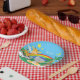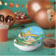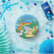 Add a cute colourful jungle theme to the birthday party or baby shower of your little boy or girl with this adorable custom safari paper bowl. Bowl has a zebra, giraffe, elephant, and lion, all near a palm tree, a rainbow, and bright sunny stars. The name of your little kid completes the look.