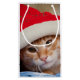 Little Kitten in Red Christmas Hat Small Gift Bag