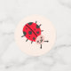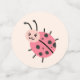 Cute party decor confetti for a ladybug theme girl's 1st birthday party. The text says "our little ladybug."