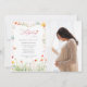 Soft pink pinstripes paired with delicate hand-painted ladybugs, wildflowers, and lush greenery create a charming garden-inspired design. Gentle florals frame the layout, evoking a light, whimsical feel with storybook elegance. The pastel color palette and nature-inspired details bring warmth and sweetness, making this invitation perfect for a joyful celebration welcoming a little one.