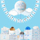 Add a delightful touch to your event with these adorable stickers featuring a sweet scene of a little lamb soaring high amidst a sky filled with boy blue balloons.