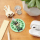 This cute St. Patrick's Day design features a little leprechaun dressed in green with a background of shamrocks in a circle.