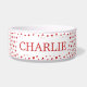 A sweet and simple way to show your pet some love. This customisable bowl features a sweet pattern of tiny red hearts, creating a warm, playful look that suits any furry friend. Add your pet’s name to make it uniquely theirs and bring a touch of personality to mealtimes.