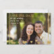 A trendy design, with a little golden glitz, to announce your wedding plans. The "growing" hearts, vertical lines and the words "Save the Date" are all in metallic gold. The words can be dragged to location, made larger or smaller (+-) or eliminated. You can also change the back colour by selecting "Edit", "Background", Pick a colour from the "Advanced" colour chart, click "Done".