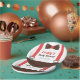 Party supplies paper plates designed to look like a gentleman outfit. It features a dark brown bowtie with white polka dots and a pair of red straps suspenders. Perfect for mummy to be who is expecting a baby boy! Personalise easily with your baby shower message!