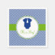A little man themed baby shower paper napkin. Navy blue chevron pattern with accents of green. Featuring a cute romper with tie illustration.