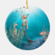 a little mermaid in the play with starfish - a cute underwater scene with a little mermaid, fishes, starfish, shell, mussels and more