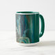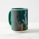 Coffee mug with a vintage fairytale painting of the little mermaid and a statue. Painting by Nino Carbe.