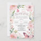 Little Miss butterfly Pink Floral 1st Birthday Invitation