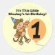 Little Monkey 1st Birthday Tshirts, bodysuits, cards, tote bags, buttons, and more featuring a cute monkey in a partyhat carrying a big candle and text that reads "It's This Little Monkey's 1st Birthday!".