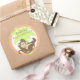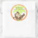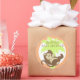 Little monkey and tropical palm tree baby shower sticker to compliment our monkey jungle baby shower invitations. Personalise text as preferred.