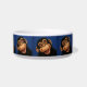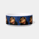 This is a heavy, durable bowl decorated with Tibbies of many colors, the perfect size for hungry/thirsty Tibs. The design is interesting and printing clear.