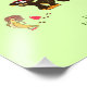 Poster with funny little monkey and running banana on light green background