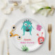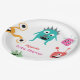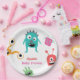 Cute little monster theme baby shower custom paper plates. Perfect for Halloween theme baby shower. Designed and illustrated with love by Kristine Lee www.kristineleedesigns.com