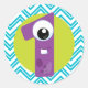 Little Monster first birthday sticker ONE monster with blue chevron background.