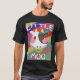 I give wanted to give this a 4 instead of a 5 because these Basic DARK T0shirts run unexpectedly SLIM or Narrow. Which is great if you do not have a potbelly, but I have a paunch. It isn't the shirt's fault that I've got a beer belly. The design and shirt itself is a quality cotton shirt. The color is more of a deep purple, but still a very pretty color. The Basic DARK T-shirts run a bit SLIMMER than the Basic Ts. The neck is a fraction narrower (or seems to be narrower) also. I'm a paunchy middle-aged woman and my neck is 12 inches (31cm) thick and the neckline fell about the same as in the photo of the man, and I had the desire to tug it a bit. So if you're a thick necked man or like loose shirts, be aware these are slimmer shirts. Once I get rid of my lockdown paunch it'll look great. The shirt washed well in cold water with no apparent bleeding. We don't have a dryer, so it hung dry. Did not shrink. Love the colors and the design. The design looks smaller on my shirt than it does on the model on-line. But still, it looks good on the shirt. The printing looks as it does on the model, just the size seems fractionally smaller. Washed garment in cold water, hung dry and design appeared unaffected.