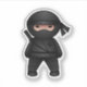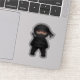 Adorable chubby yet fearsome looking little ninja is dressed in black outfit and carrying katana - traditional Japanese sword.