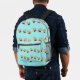 A delightful pattern featuring little orange trains chugging along on a serene blue background, evoking a sense of nostalgia and whimsy. Perfect for adding a touch of charm to children's gift that is need of a playful motif.