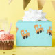 A delightful pattern featuring little orange trains chugging along on a serene blue background, evoking a sense of nostalgia and whimsy. Perfect for adding a touch of charm to children's gift that is need of a playful motif.