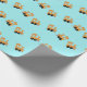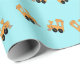 Little orange trains pattern on blue wrapping paper