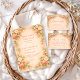 This romantic peach garden collection features soft watercolor peaches, blush florals, and delicate ribbon bows arranged in an elegant vintage-style frame. The warm pastel palette and airy botanical details create a timeless, feminine look that feels both sweet and refined. Perfect for a peach-themed celebration, this design pairs beautifully with garden, cottage, and storybook-inspired baby showers.