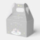 Send guests off with a sweet favour box after your Little Peanut Baby Shower. This modern light grey watercolor elephant sitting on soft clouds and surrounded by twinkling stars is sure to send a heartfelt thank you. Personalise the text that reads, a little something from the mummy-to-be. Coordinating gender neutral baby shower party decor, tableware and invitations in the shop.