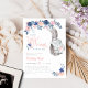 Celebrate the arrival of a precious baby girl with our Little Peanut Floral Baby Elephant Shower Invitation. This modern and sweet invitation showcases a beautiful illustration of a baby elephant being lovingly swung in her mother's trunk. The delicate floral accents in shades of navy and blush pink add a touch of elegance and make this invitation truly special. Join us in welcoming the little one with joy and love!