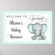 Little Peanut Mint Elephant Baby Shower Welcome Poster