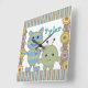 Monsters creeping. Monsters peeking. Zany and vibrant meet easy and simple. This custom-designed baby wall clock is a great complement alongside the Cocalo Peek-a-boo Monsters theme. This unique and silly clock assumes no affiliation with Cocalo or any of its products but boasts one-of-a kind artistry that will make your nursery theme a prominent piece for your baby shower or gift-giving needs. All artwork is custom designed for you by me. Simple.