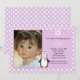 A sweet winter-theme invitation with polka dots, and an adorable little penguin dressed in a pink hat and scarf. (FP)