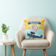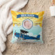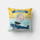 Baby room birth announcement pillow featuring modern typography and a cute aeroplane on a bright sunrise background. Add all your lovely details on this easy-to-use template and adorn this pillow with your favourite baby's photo.