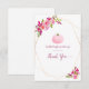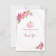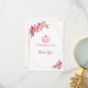 Sweet baby girl pink florals and rose gold geometric frames to thank your baby shower guests. A pink pumpkin at top.