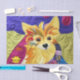 This is a fun artsy design of a Little Pom puppy quilt like motif. It's vibrant colors and textures would be a unique and eye catching addition to any home and is sure to bring a smile to everyone's face.