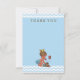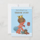 Elegant custom personalised vintage prince baby shower thank you card template for baby boys with a beautiful vintage illustration of a cute and adorable baby boy with stylish blue diaper and gold crown. He is ringing you on an old red retro telephone to say thank you. He is holding a little blue suitcase and his quirky teddy bear is leaning against it - he's all packed up and ready for his arrival! The background is a pretty blue with a classy, modern, contemporary blue chevrons border with grey text. Chic, trendy, fun, fashionable, funny, amusing, humourous, whimsical, affordable personalised / personalised custom baby boy shower thank yous templates. Decorated on both sides. The back / reverse side has the same design. Double sided printing / front and back. You can hand write your message on the back. If you need any assistance customising your product please contact me through my store and I will be happy to help.