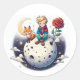 This patch shows a beautiful illustration of the Little Prince sitting on the moon, accompanied by his faithful fox and the delicate rose. Each detail was carefully designed to capture the essence of friendship, innocence and curiosity that makes this story so special.