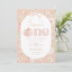One cute pumpkin! Floral pumpkin and bow Themed 1st Birthday Invitation featuring peach background with daisies, pumpkin and cute pink bow.