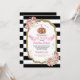 Cute little pumpkin theme baby shower invitation with pink and gold glitter, and chic black and white stripes.