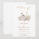 “A little pumpkin is almost here!” This charming baby shower invitation features a soft watercolor pumpkin accented with delicate florals and foliage. Perfect for fall or harvest-themed celebrations, this invitation adds seasonal warmth and rustic charm to your special day. A sweet and timeless choice for honouring parents-to-be during the autumn season.