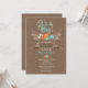 Little Pumpkin Baby Shower Invitation for Boy with aqua, brown and orange colours. The background is a dark brown burlap effect.