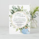 Little pumpkin blue greenery boy baby shower invitation