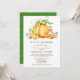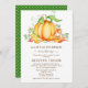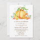 This sweet, gender neutral baby shower invitation featuring a large watercolor pumpkin surrounded by fall leaves and eucalyptus would be perfect for your shower! It's fabulous for a fall or harvest time by mail baby shower. It has a coordinating green back with tiny white polka dots. So cute!