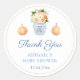 Thank you stickers for any event (shown here for a Baby Shower but all of the text fields are customisable). The design features a watercolor blue and white ginger jar vase, filled with fall flowers, with watercolor orange pumpkins on either side.