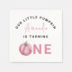 Cute birthday invitation card featuring watercolor illustration of PUMPKIN. The text says "OUR LITTLE PUMPKIN".